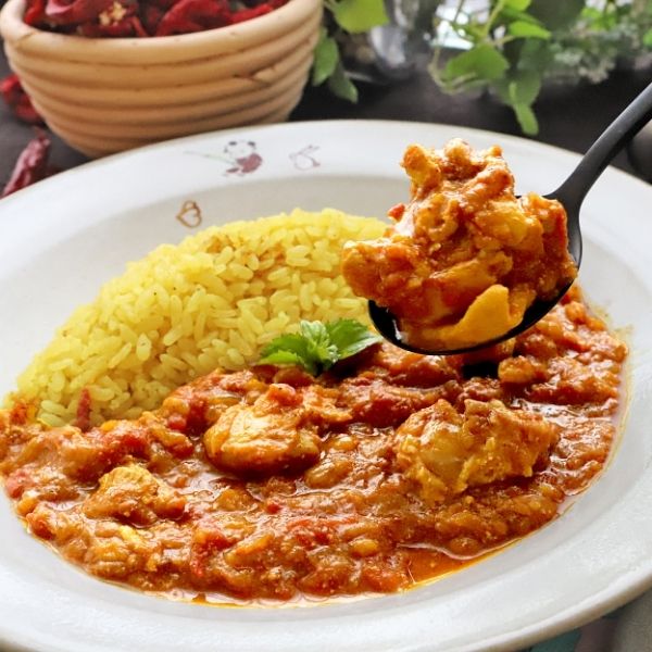 ゴロっと大きな鶏肉にびっくり!のバターチキンカレーは奈良産酒粕入り。