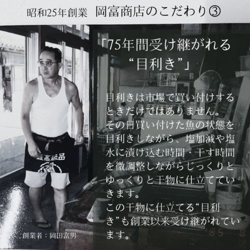 おかとみの一夜干しは、のどぐろ・白かれい・かます、にぎすと小ぶりの魚を選び、朝食にぴったりのセットにしました。
