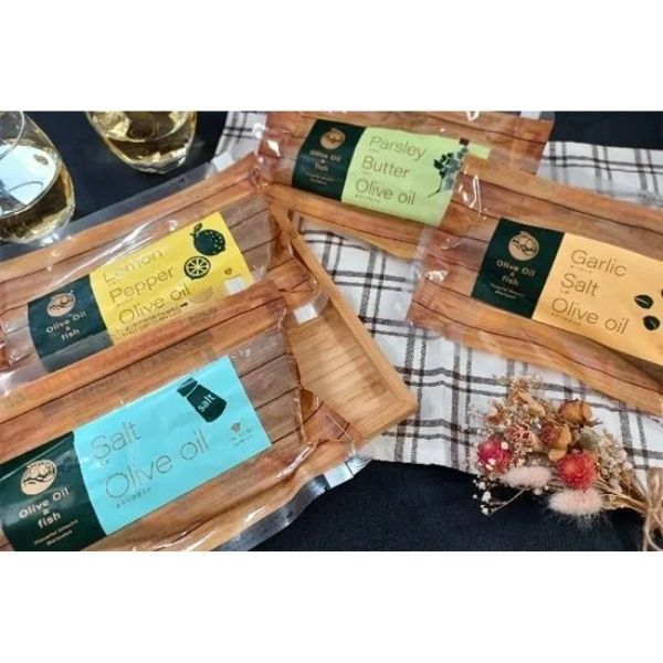 シマホッケの干物をバター、ガーリック、オリーブオイルなどの調味料で洋風の味付けにしたことで、白ワインやパンとの相性が抜群に良くなっています。