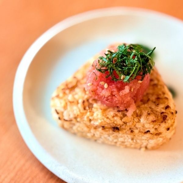 匠の手仕上げによって国産玄米を香ばしく焼き上げ、外はおこげの風味、中はふっくらとした食感を楽しめる焼おむすびです。
