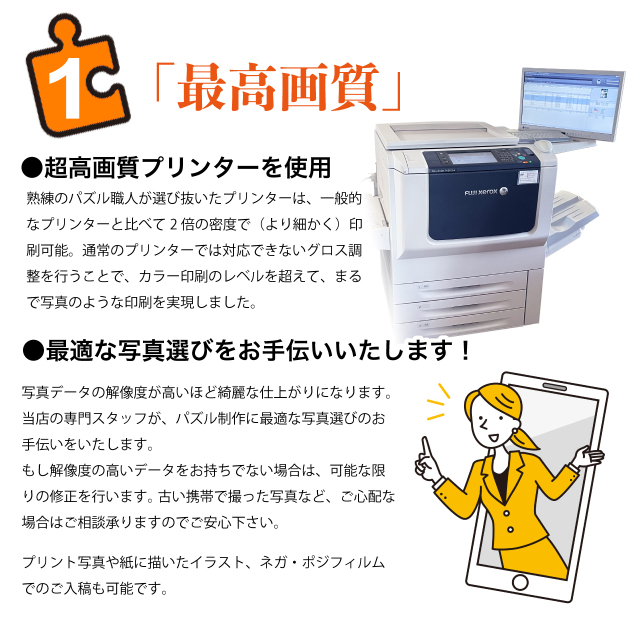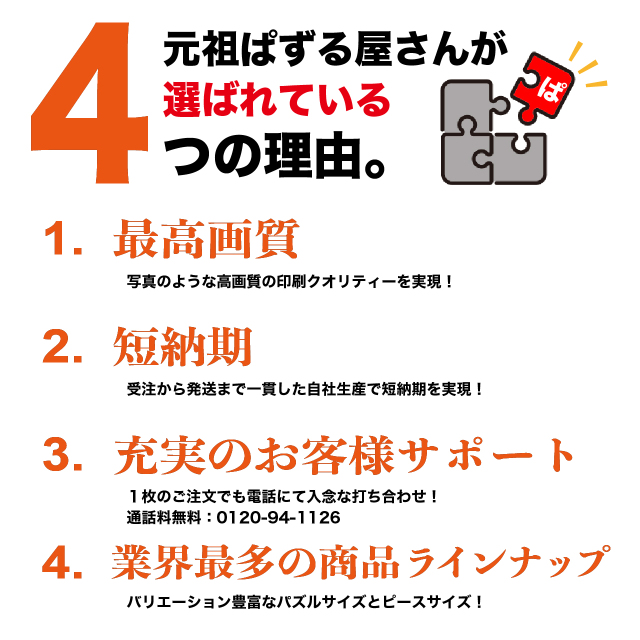 愛する人のお写真や、お気に入りのお写真・イラストをご用意ください、世界でたったひとつのオーダーメイドジグソーパズルを制作いたします。