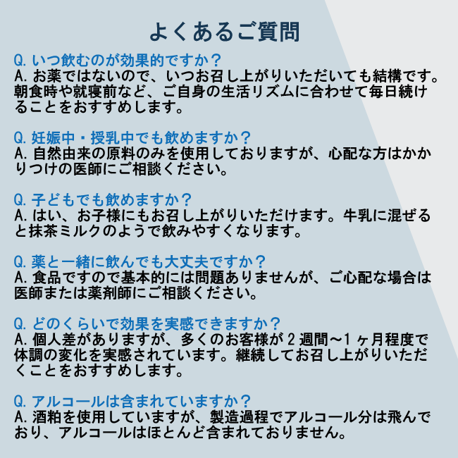 ノンアルコール・無添加なので、ご家族全員で安心してお楽しみいただける「日本のスーパーフード」です。