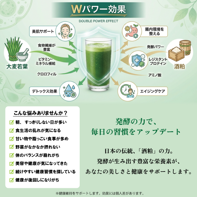 ■酒粕×大麦若葉のWパワーが美容と健康を内側からサポート