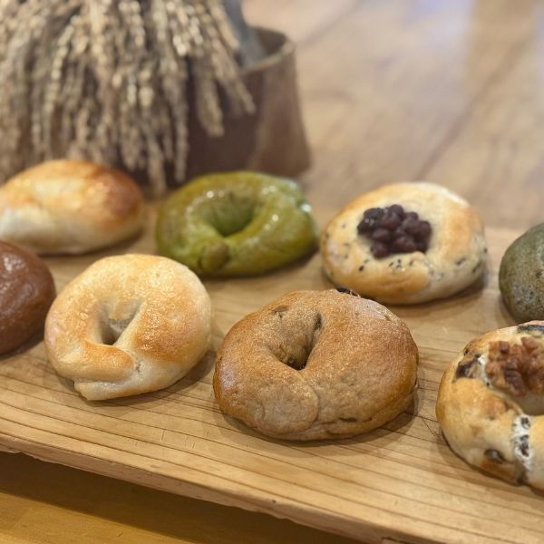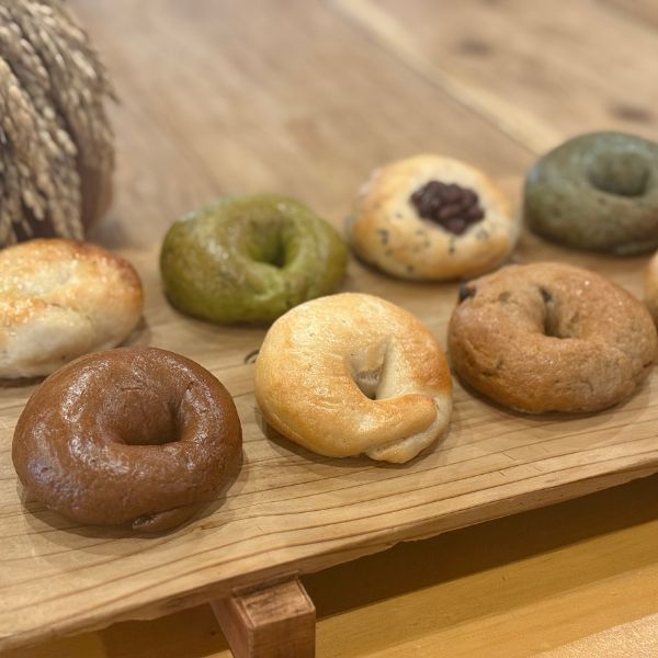 当店自慢の自家製米粉ベーグルを8種類ご用意いたしました。よつ葉の発酵バターやミネラル豊富な自然塩、てんさい糖のみで味付けした北海道産小豆など素材にこだわった米粉のベーグルをご堪能ください。