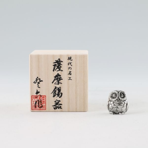 【薩摩錫器工芸館】置物 ふくろう(黒漆加工)