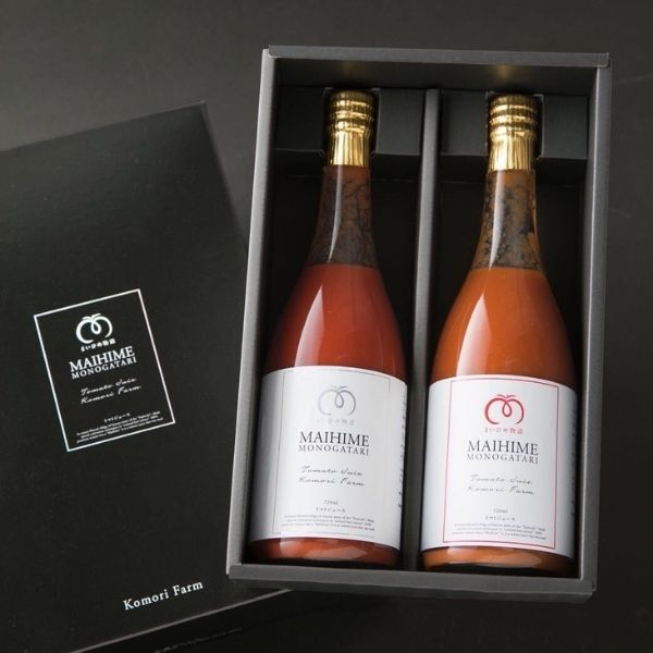 プレミアムトマト”まいひめ物語”だけを使用し、保存料・添加物・水1滴さえも加えていない正真正銘100%トマトジュース。
